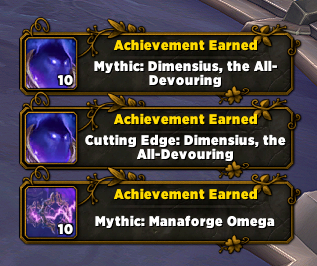 Dimensius was a boss I was not in on progress for. I was on holidays when we began prog, although I was in for every other first kill this season, much like season 2. There, I was in for every single progression kill except Gallywix, where IRL again got in the way of me being in for prog for the kill.